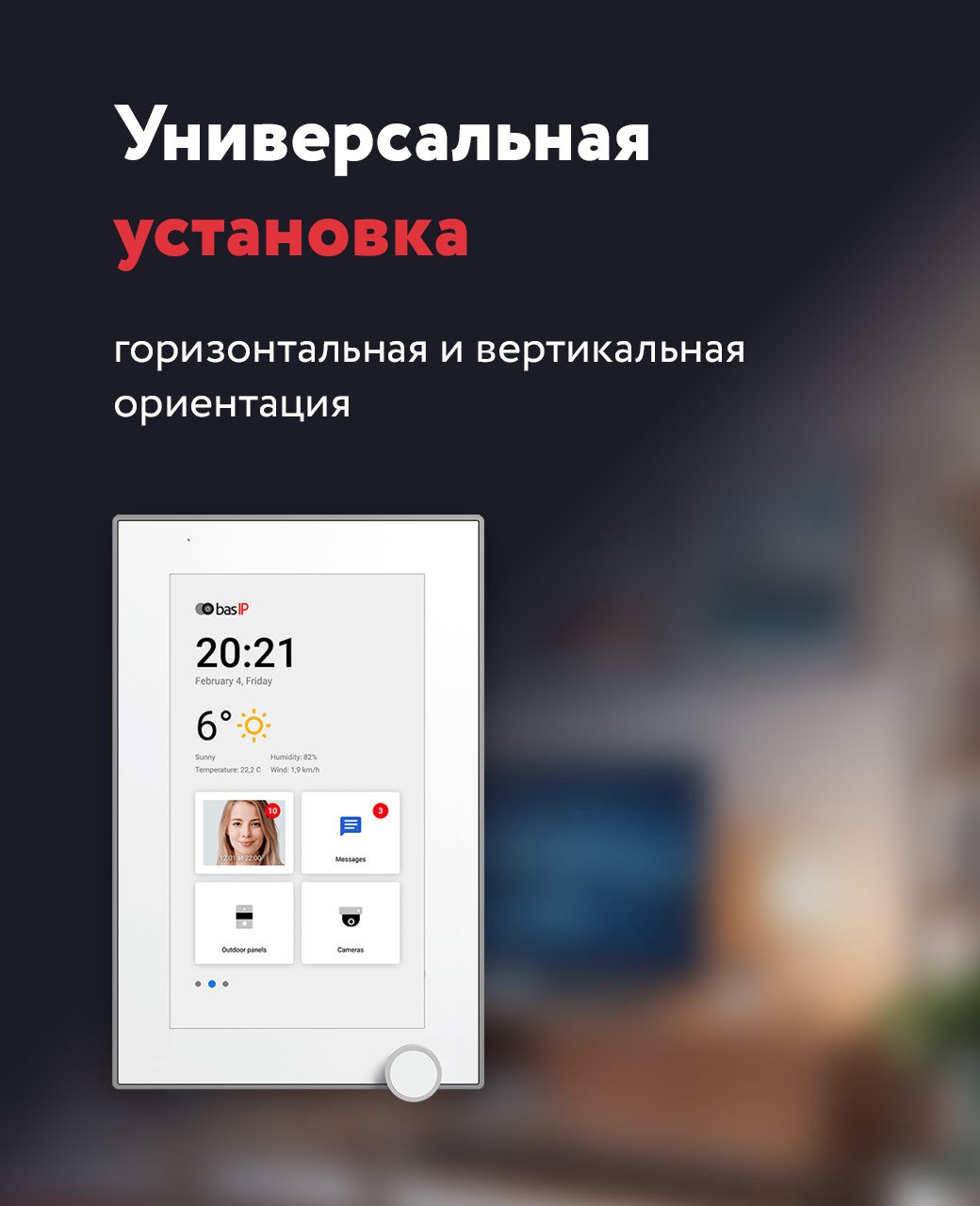 - Функции: управление лифтом, отображение сообщений от управляющей компании, аудиоинтерком.