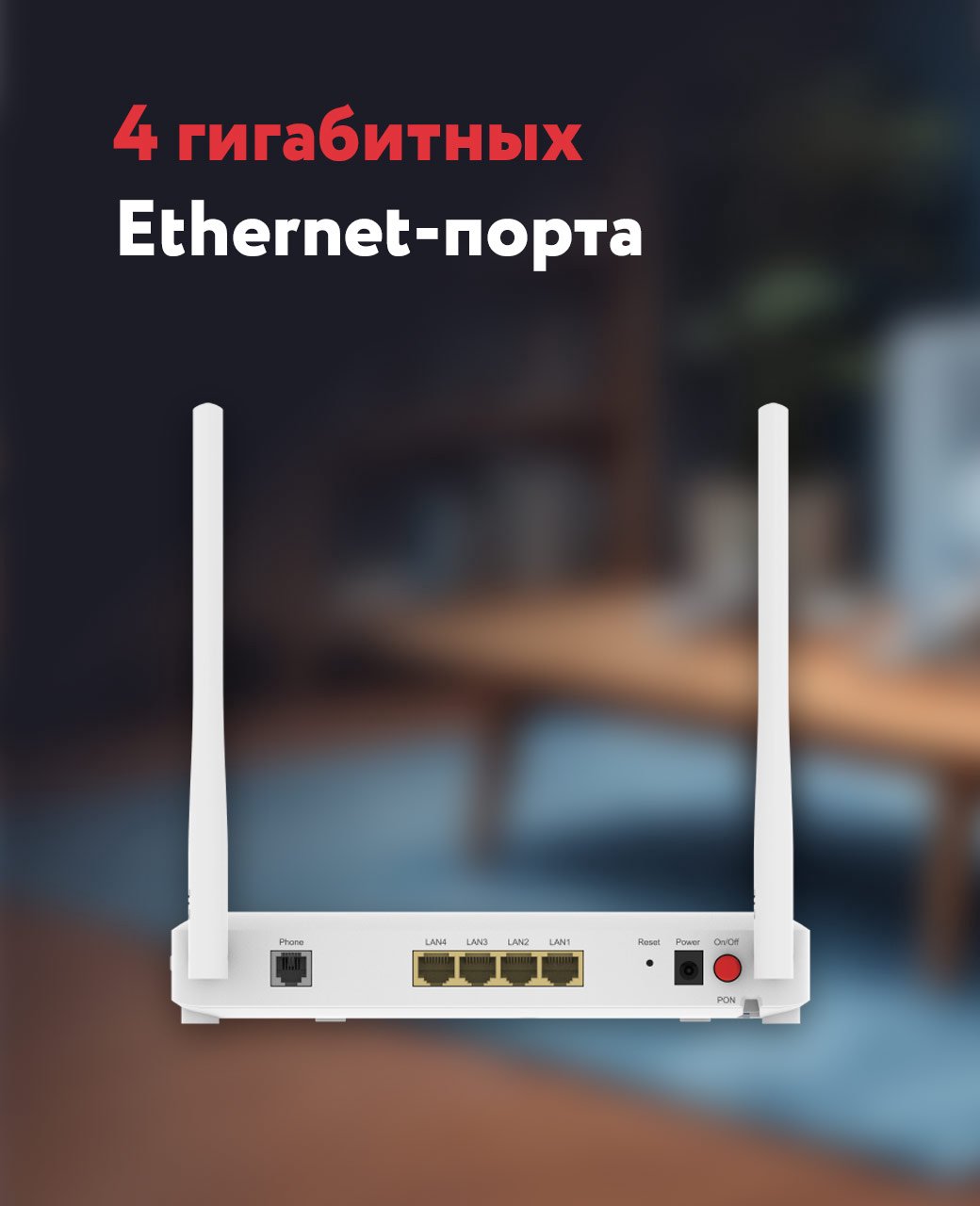 - Порты LAN: 4 гигабитных Ethernet-порта (GE) для подключения проводных устройств.