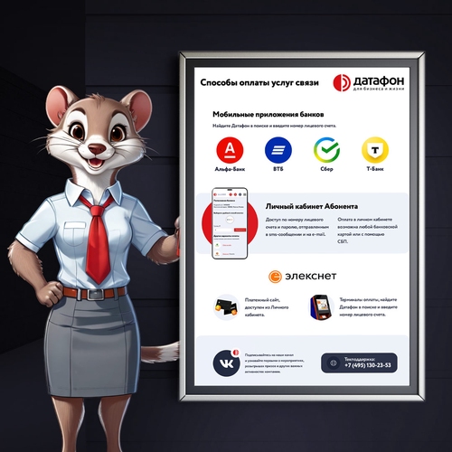 Датафон напоминает, что 1 числа каждого месяца происходит списание ежемесячной абонентской платы по вашему тарифному плану. Чтобы избежать прерывания услуг, пожалуйста, заранее пополните баланс вашего лицевого счета.